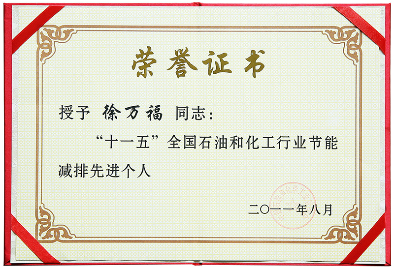 常務(wù)副總徐萬福榮獲“十一五”全國(guó)石油和化工行業(yè)節(jié)能減排先進(jìn)個(gè)人。